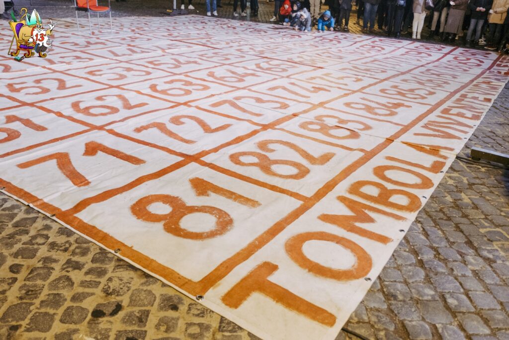 Palcoscenico del gioco è un grande Cartellone di 10 metri per 10, disteso sul pavimento di piazza della Repubblica, con le caselle riempite dai Numeri, 90 persone vignanellesi e non che interpretano in modo festoso e creativo il loro ruolo.